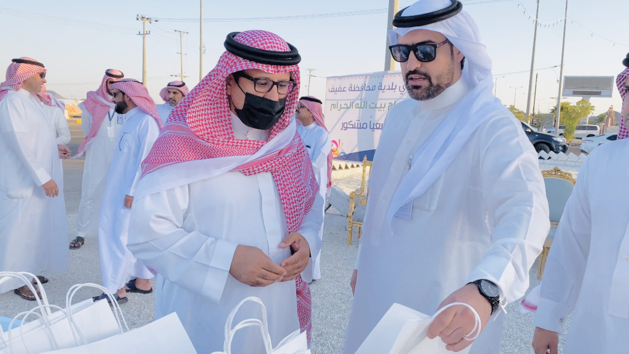 دشن محافظ عفيف الأستاذ : سعد بن محمد بن معمر مبادرة (استقبال وضيافة حجاج بيت الله الحرام) التي تنظمها البلدية بالشراكة معالدوائر الحكومية المدنية والأمنية والقطاع الخاص وأهالي المحافظة لاستقبالهم وتقديم واجب الضيافة لهم أثناء مرورهم بالمحافظة .