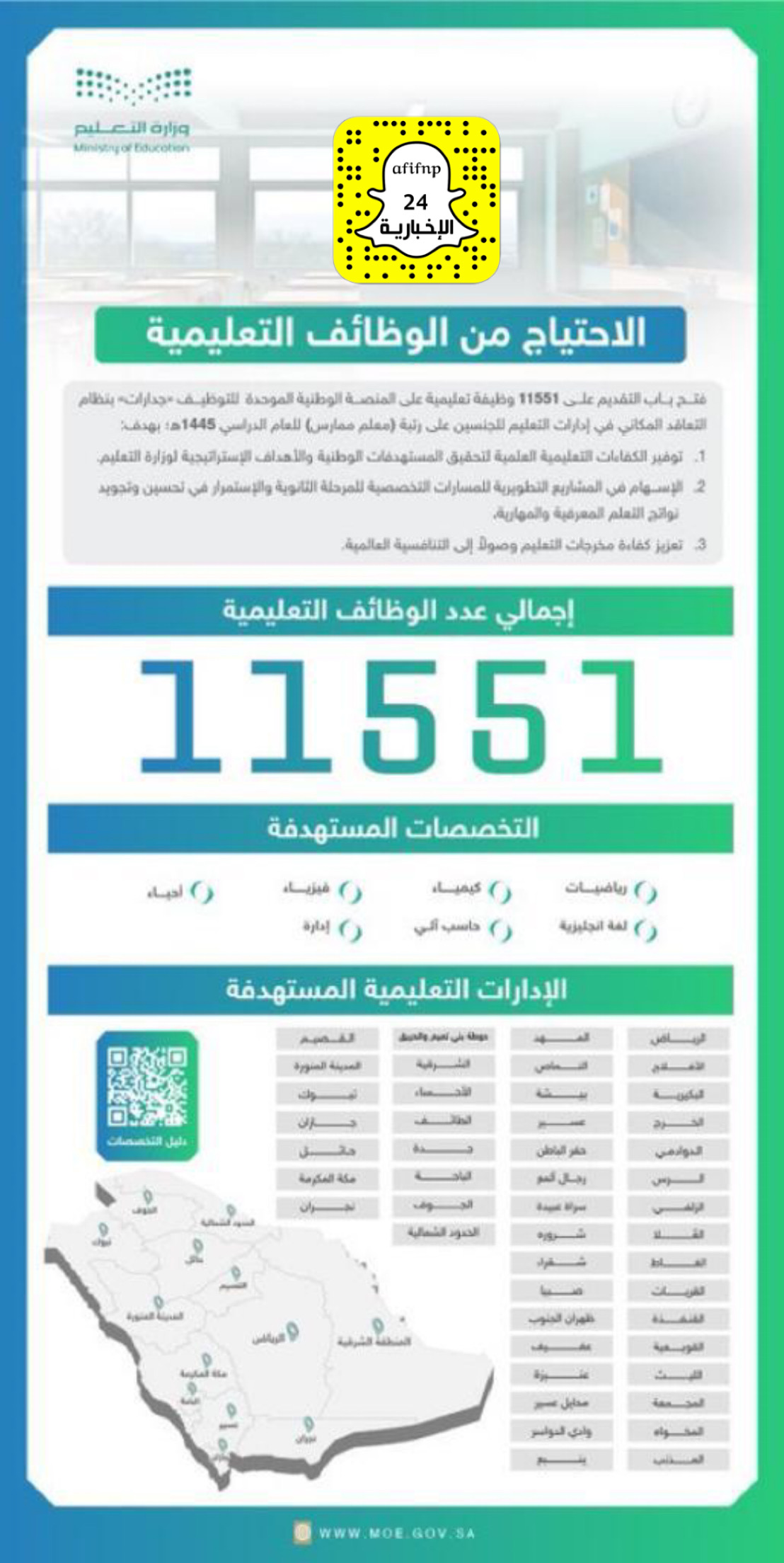 للمزيد من التفاصيل، والاطلاع على التخصصات المتاحة يمكنكم زيارة بوابة وزارة التعليم على الرابط الإلكتروني:
