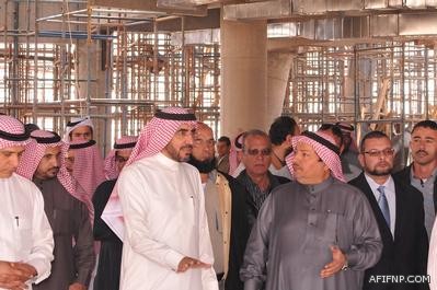 كما قام معاليه بزيارة لموقع المشاريع الإنشائية للكليات الجامعية لتفقد المشروع والوقوف على سير عمل المشروع والإطلاع على ما وصل إليه العمل واللقاء بالقائمين على المشروع ومتابعة المراحل التي تم انجازها، وتفقد كافة المباني الإنشائية، وناقش الصعوبات التي عرضت عليه من فريق عمل المشروع والهيئة الإشرافية بالوزارة، وقام بالاستماع لشرح تفصيلي عن المبنى وعن المدة المتبقية لاستلامه. وأكد معاليه على حرصه الشديد على الالتزام بالمواعيد المحددة وعلى سرعة إنجاز جميع المشاريع الجامعية وذلك ضمن المواصفات والمقاييس المعتمدة. هذا وقد رافقه في الزيارة المشرف على مشاريع الجامعة بوزارة التعليم العالي الدكتور المهندس عبدالله الصقير .