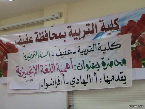 أقامت كلية التربية بعفيف اليوم الأربعاء محاضرة لطلاب السنة التحضيرية،تحت عنوان ” أهمية اللغة الأنجليزية”،