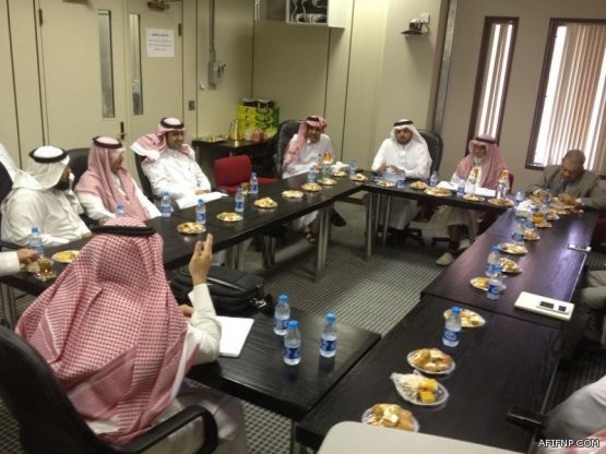 من اليمين عبدالله حسين المتعب والأستاذ الدكتور حسن عبد المالك محمود والدكتور محمد الحصيني والاستاذ أحمد المتعب والدكتور محمد الحربي والأستاذ سعد العريفي .