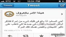 اثارت تغريدة منسوبة لهيئة الأمر بالمعروف والنهي عن المنكر، ونُشرت على موقع التواصل الاجتماعي تويتر ردود أفعال غاضبة؛ لما تحتويه من ألفاظ وعبارات تسيء للمرأة، وتحط من قدرها.