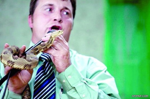 توفي قس معروف بتقديمه الوعظ مستخدما أفاعي مجلجلة ملفوفة حول ذراعه عندما قامت إحدى الأفاعي بعضه على نحو مفاجئ.