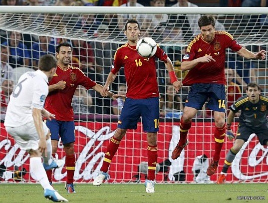 تأهلت أسبانيا إلى الدور قبل النهائي في بطولة أوروبا لكرة القدم 2012 بعد أن تغلبت على فرنسا 2 – صفر في دور الثمانية بفضل هدفين سجلهما تشابي الونسو اليوم السبت.