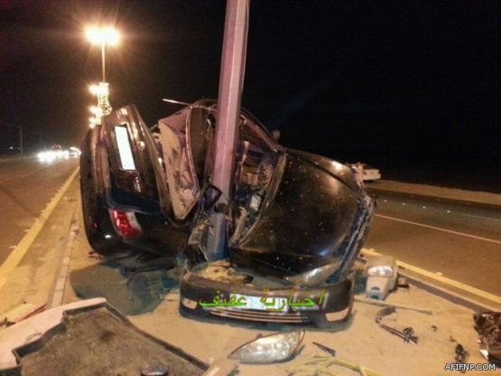لقي مقيم من الجنسية الباكستانية بعد صلاة العشاء من هذا اليوم الثلاثاء مصرعه اثر حادث مروري شنيع بعد انحراف مركبته التي يقودها نوع تويوتا واصطدامها بعمود الانارة بالمدخل الشرقي بمحافظة عفيف .
