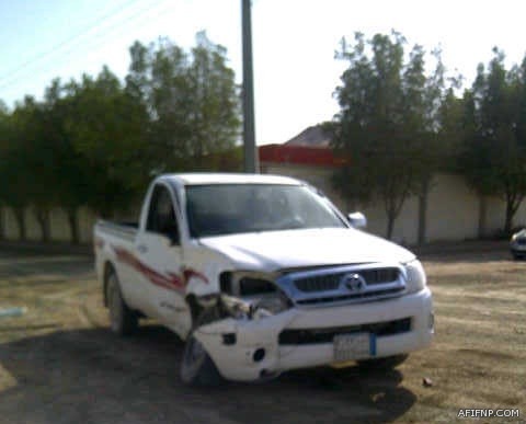 وقد اسفر الحادث عن اصابة قائد الهايلوكس بكدمات سطحيه وتم نقله بواسطة الهلال الأحمر لمستشفى عفيف العام .