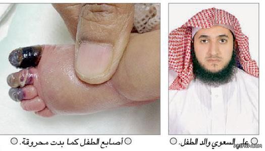 طالب القاضي في وزارة العدل الشيخ علي بن محمد السعوي، بمحاسبة المتسببين في إصابة ابنه الصغير حديث الولادة بحروق في ثلاثة أصابع بقدمه اليسرى.