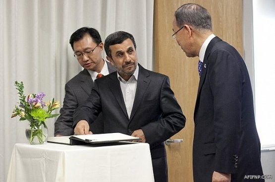 حذر بان كي مون الأمين العام للأمم المتحدة الرئيس الإيراني محمود احمدي نجاد من أخطار استخدام لغة تحريضية عندما التقيا في نيويورك أمس الأحد قبل التجمع السنوي لزعماء العالم في الجمعية العامة للأمم المتحدة هذا الأسبوع.