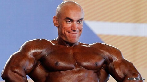 متسابق في بطولة كمال الأجسام ينسى صبغ وجهه