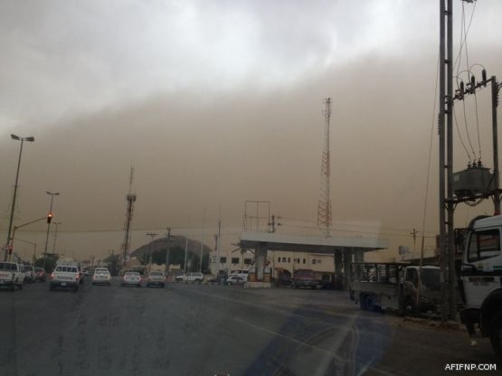 شهدت سماء محافظة عفيف منذ الساعات المبكرة من صباح يوم السبت الموافق 25 / 12 / 1433هـ تقلبات جوية بدأت بتشكيلات من السحب والأجواء الشتوية الجميلة ثم تحولت سماء المحافظة الى غبار بعد أن ضربتها عاصفة رملية قادمة من الجهة الشمالية الغربية شملت القرى الواقعة شمال وغرب عفيف مروراً بالمحافظة منتقلة الى القرى الواقعة شرقها، عقبها أمطار خفيفه غسلت الغبار والاتربة ، هذا وقد حذر الدفاع المدني من تقلبات ستشهدها اجواء محافظة عفيف، فيما أهاب بأخذ الحيطه والحذر، وتجنب الاماكن المزدحمه, من جهته توقعت الأرصاد هطول امطار متوسطه على وسط المملكه .