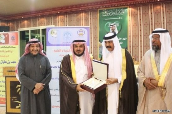 رعى وكيل محافظ عفيف الأستاذ عبدالله بن علي السليس مساء يوم الثلاثاء الموافق 27 / 1 / 1434 حفل اختتام فعاليات المنتدى الوطني للتعليم للجميع بحضور المشرف الوزاري الدكتور حمد الطيار ورؤساء الدوائر الحكومية ورؤساء الأقسام بالادارة وعدد من رجال الأعمال وكبار الشخصيات ، حيث قدم فقرات الحفل الاستاذ تركي ماطر الغنامي بإفتتاحية القرآن الكريم وكلمة مدير التربية والتعليم الاستاذ ابراهيم العجلان الذي اشاد بدور اللجان المنظمة للمنتدى الوطني وشكر رئيس بلدية عفيف الاستاذ محمد الغريب على استضافته الحفل عقبها كلمةرئيس المنتدى الوطني الاستاذ : فهد عبيد المغيري تحدث فيها عن فعاليات المنتدى وبرامجه ، عقبها كلمة رئيس التخطيط والتطوير الاستاذ : خالد جزاء العتيبي ، عقبها عرض مرئي لبرامج وانشطة المنتدى ، عقبها تكريم مدراء التعليم السابقين ابتداء من الاستاذ علي محمد اللحيدان رحمه الله و الاستاذ : منصور القزلان والاستاذ : خلف ابراهيم العريفي والاستاذ : علي خضر الثبيتي والاستاذ : ملفي عبدالرحمن العتيبي كوفاء لهم على ما قدموه للمحافظة وخاصة قطاع التعليم طيلة فترة رئاستهم ، عقبها تكريم الاجهزة الحكومية المشاركة ورجال الاعمال الداعمين ولجان المنتدى وعقبها وجبة العشاء التي اعدت بهذه المناسبة .