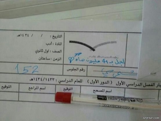 أخبار التعليم > طالب جريئ يسخر من شعار وزارة التربية في ورقة الإجابة