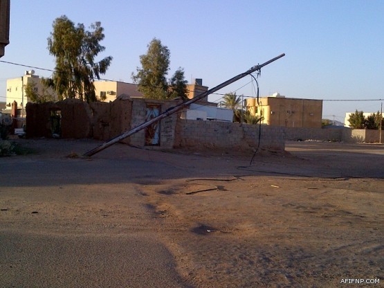 بالصور .. سقوط كيابل كهربائيه بعد ميلان احد الاعمده بعفيف والاهالي يطالبون بازالته