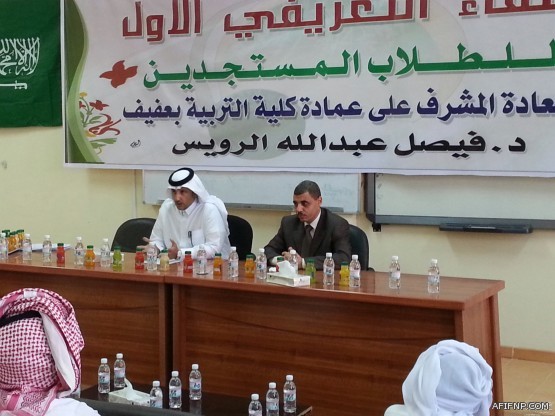 إلتقى سعادة المشرف على عمادة كلية التربيه بعفيف الدكنور فيصل الرويس ، الطلاب المستجدين بكلية التربية