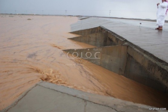 طريق القصيم عفيف وقد غمرته المياه بالكامل