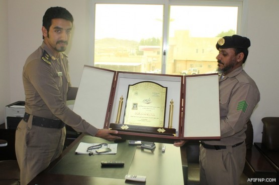 أقام أفراد فرقة الدفاع المدني بمحافظة عفيف (وحدة وسط عفيف) صباح اليوم السبت الموافق 1/7/1434 بتكريم الملازم أول / حمد محمد القحطاني نظير لجهوده المبذولة والمتميزة في تطوير وحدة وسط عفيف واهتمامه بها , حيث سلم الدرع نيابة عن الأفراد الرقيب ضيف الله عوض العتيبي .