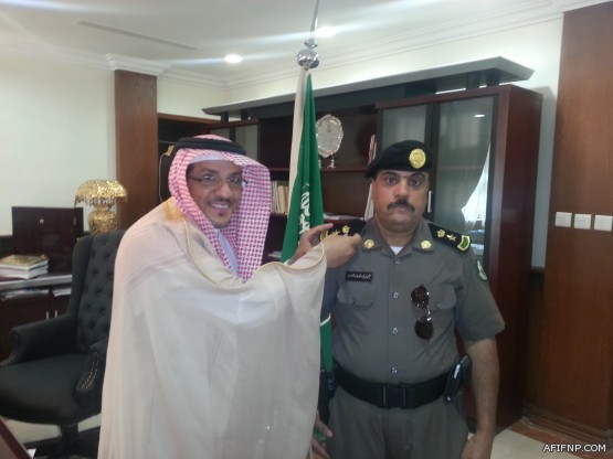 محافظ عفيف يقلد مدير مرور عفيف الرائد عوجان العتيبي رتبة مقدم
