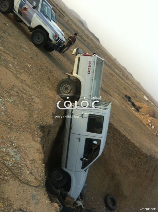 وفي نفس السياق فقد عثرت فرق الدوريات الأمنية على سيارة نوع داتسون مرمية بإحدى الحفر بالقرب من المقبرة ، وبعد البحث في التعاميم الواردة للدوريات لم يوجد اي تعميم بشأنها وتم تزويد مركز شرطة عفيف بمحضر بالواقعتين.