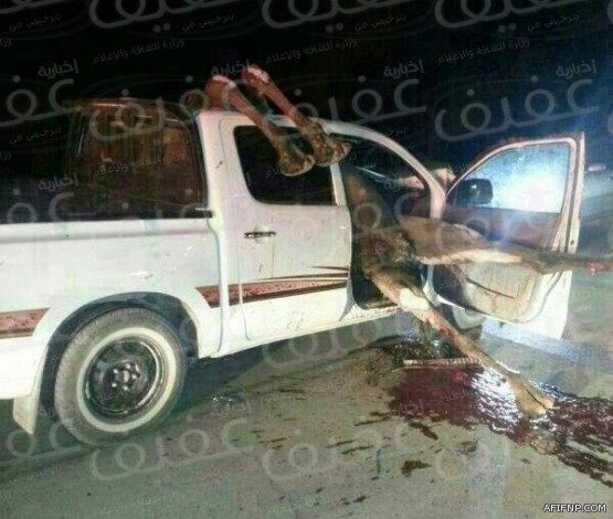 نبّه عدد من المواطنين عبر موقع التواصل الاجتماعي الشهير “تويتر” المارّين بطريق عفيف – الحجاز لاخذ الحيطه وتوخّي الحذر, نظير قطع الابل السائبه للطريق, وتداول المغرّدون (صوره) لجمل سائب اصطدمت به مركبه نوع “هايلوكس” اصيب خلاله شخصين باصابات بليغه.