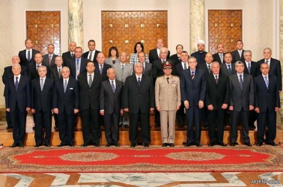 وكان رئيس الحكومة الجديدة الخبير الاقتصادي حازم الببلاوي اول من ادى اليمين الدستورية امام الرئيس وتلاه باقي الوزراء تباعا، وفق التلفزيون.