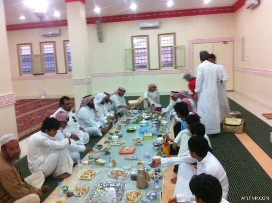 محليات > جماعة مسجد بن عباس يجمعون أهالي الحي على مائدة الافطار بمحافظة عفيف