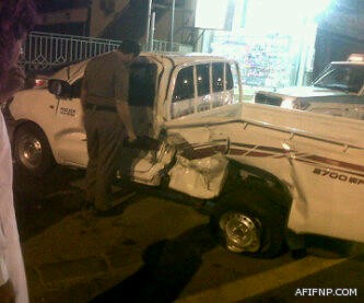 وقع صباح يوم أمس السبت حادث مروري نتيجة انحراف مركبة نوع هايلوكس موديل حديث واصطدامها برصيف الشارع العام, مقابل مغسلة عوافي, حيث اصيب على اثرها شاببين وتم نقلهما إلى مستشفى عفيف العام, وقد باشر الموقع مرور عفيف.