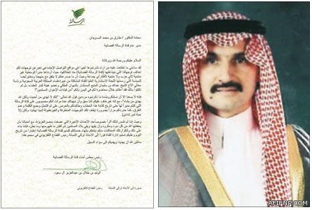 أعلن الأمير الوليد بن طلال رجل الأعمال المعروف ورئيس مجلس أمناء قناة الرسالة الفضائية عن إقالة مدير القناة الدكتور طارق السويدان، بعد تصريح الأخير بكونه «أحد قيادات الإخوان».