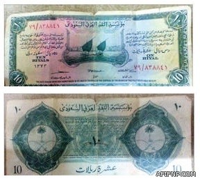 حمل أول إصدار ورقي لعملة عشرة ريالات سعودية في عام 1373هـ (أي قبل 61 عاما)، ست لغات، إذ صدر هذا الإيصال وفقا لمؤسسة النقد لتيسير أداء حاملة فريضة الحج وذلك بجعل حصوله على الريالات العربية في متناول يده بسهولة وسرعة أثناء إقامته في البلاد العربية السعودية ودون تكبد نفقة الصرافة.