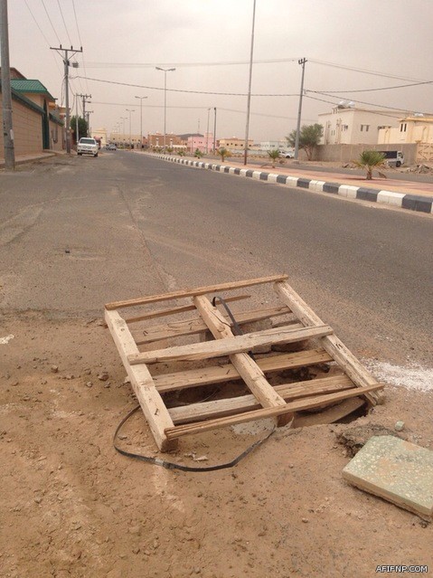 أدى هبوط مفاجئ في وسط شارع حيوي في الحي الذي يقع خلف إدارة تعليم محافظة عفيف إلى إحداث حفرة في الأرض قطرها متر وبعمق يقارب المتر ايضاً مما اصبح يهدد المارة والمركبات .