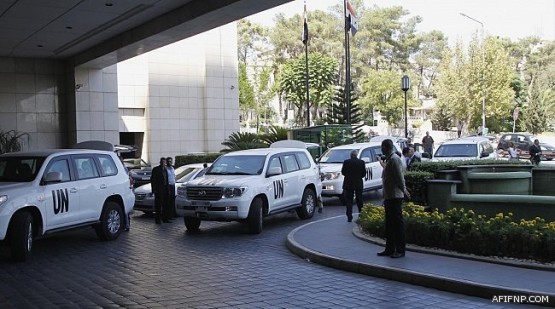 وكان أعضاء فريق مفتشي الأمم المتحدة يرتدون سترات واقية ورافقهم رجال الأمن وعربة إسعاف. وذكروا أنهم متوجهون إلى الغوطة الشرقية التي يسيطر عليها مقاتلو المعارضة على مشارف دمشق حيث يقول ناشطون ان صواريخ مليئة بالغاز السام قتلت مئات.