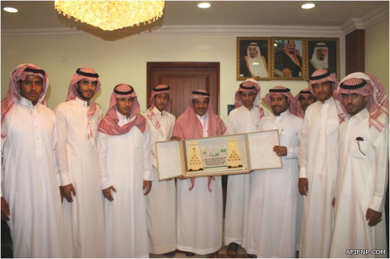 استقبل سعادة محافظ محافظة عفيف الاستاذ/ رشيد بن سليمان الجبرين ، المشرف على عمادة كلية ادارة الاعمال بعفيف الدكتور /مطلق مقعد الروقي وبرفقة عدد من طلاب الكلية وقد استمعالجميع الى كلمة توجيهيه من محافظ عفيف بمناسبة اليوم الوطني اكد فيها غلى مضامين واهداف اليوم اليوم الوطني التي تدعو الى تضمن مفهوم الموطنه الحقيقه وقد استمع المحافظ الى بعض مشاركات والمداخلات تضمنت قصيدة وطنية القاها الطالب منير بدر الشيباني ، وفي الختام قدم الدكتور مطلق الروقي درع كأهداء من منسوبي وطلاب الكلية بمناسبة يوم الوطن.