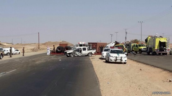 تعرضت شاحنه ظهر اليوم الجمعه للانقلاب نتيجة اصطدامها بداتسون بالقرب من قرية عفيفه شرق محافظة عفيف , وفي التفاصيل تجاوز صاحب الداتسون الشاحنه ماسبب انحرافها عن المسار واصطدامها بالطريق المحاذي بعد انقلابها عدة مرات واحتجاز صاحبها , وكانت فرقه من المرور قد باشرت الموقع بمساندة الهلال الاحمر والدفاع المدني وذلك لتقرير الحادث وفك الاحتجاز وتنظيم السير , وجرى نقل المصابين بواسطة الهلال الاحمر لمستشفى عفيف العام , اثر ذلك صرّح مدير الاعلام والعلاقات العامه بالمستشفى الاستاذ محمد بن نايف الضليعي بأن قائد الشاحنه “باكستاني الجنسية” تعرض لكسور واصابات متوسطه فيما اصيب الطرف الآخر باصابات بسيطه.