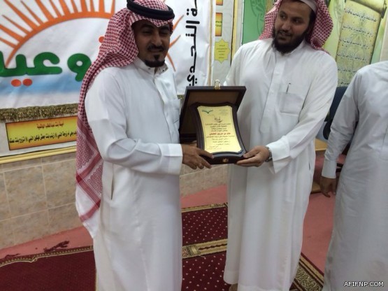 أحتفلت مدرسة أبي بن كعب ومنسوبوها بمناسبة حصول زميلهم الاستاذ جايزمرزوق العقيلي على درجة الماجستير وقد قدمو له درع تذكاري بهذه المناسبة قدمه نيابةً عنهم مدير مدرسة أبي بن كعب الاستاذ فايز سلمان المرشدي
