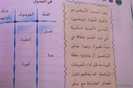 وفي التفاصيل، فإن المعلم أثناء تدريبه للطلاب على حل تمارين كتاب لغتي الجميلة، اكتشف أن أحد الجداول داخل الصفحة رقم ٥٤ من الكتاب، وُضعت فيه أسماء الصفة مكان أسماء الموصوف والعكس ? كما هو موضح في الصورة المرفقة للخبر-.