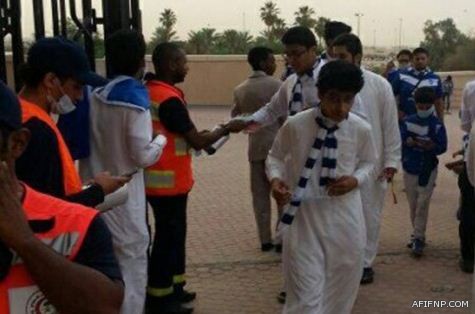 انتقلت المخاوف من انتشار فيروس كورونا إلى ملاعب كرة القدم، حيث وزّع الهلال الأحمر السعودي نحو 70 ألف كمامة على الذاهبين إلى استاد الملك فهد الدولي في الرياض لحضور مباراة الهلال وسباهان أصفهان الإيراني، مساء اليوم.