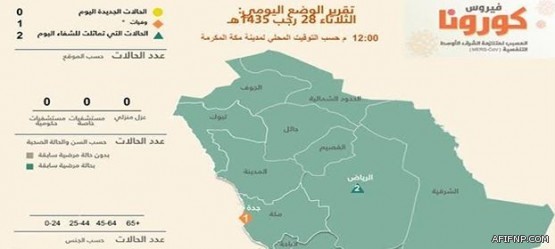 والوفاة لرجل يبلغ من العمر 81 سنة, أدخل إلى مستشفى حكومي بجدة وهو من الحالات المسجلة سابقا بتاريخ 16/ 5/ 2014. وقد وافته المنية بتاريخ 26/ 5/ 2014. تغمده الله بواسع رحمته.