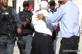 في مشهد مؤلم، أظهر فيديو صوره أحد المصلين في المسجد الأقصى، جنوداً صهاينة وهم ينهالون بالضرب على مُسن فلسطيني.