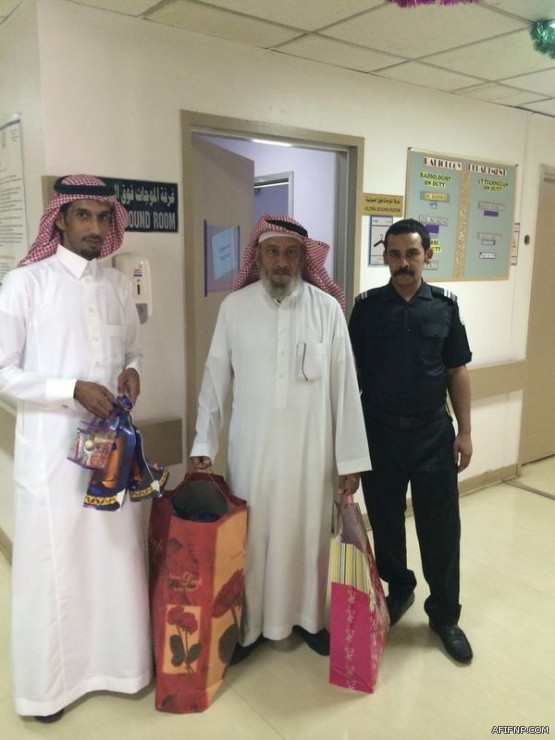 وكان رجال الامن قد اكدوا ان المواطن محمد السكران التميمي من ساكني محافظة عفيف يعاود زيارة المرضى في كل عيد من كل عام, اخبارية عفيف بدورها تشكر المواطن التميمي على هذه المبادرة الجميلة لما في ذلك من ادخال السرور وتطبيق سنة الرسول صلى الله عليه وسلم.
