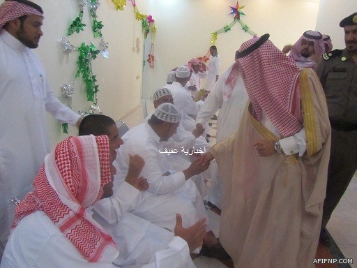 حيث عايد المنقور النُزلاء وقدّم لهم الهدايا بمناسبة عيد الاضحى المبارك واطمئن على راحتهم تجاه مايقدّم لهم ، ثم شارك ومرافقيه في حفل المعايدة المقام بتلك المناسبة وفي ختام الزيارة شكر وكيل محافظ عفيف ادارة المركز على مايقدمونه من جهود لهذه الفئة الغالية .