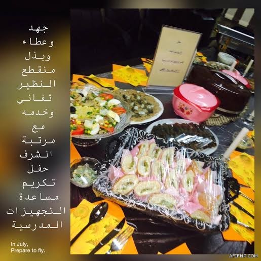اقام قسم التجهيزات المدرسية ” القسم النسائي” حفل غـــداء وتـكريم لـمساعدة رئيس القسم بمناسبة انتهاء تكليفها الاستاذة الفاضلة أمل بنت صقر الثقفي حيث أوضحت بذلك الاستاذة صفاء بنت سليمان معشي والتى تم تكليفها بالقسم و شـرف الحفل حضور مستشارة مدير التربية والتعليم الاستاذة فاطمة اليوسف ومشرفة الأمن والسلامة استاذة نوال مطر . وبدأ الحفل بترحيب الحضور وكلمة شكر من قبل المستشارة وتم تقديم شهادة شكر من قبل ادارة التربية والتعليم ودرع تقديري و إهداء مميز من قبل منسوبات القسم .