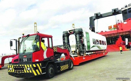 وصلت إلى جدة أمس قادمة من ميناء برشلونة الإسباني، أول الشحنات من أجزاء قطار الحرمين السريع والمكونة من عربة قطار محرك رئيسة، و13 مقطورة عبارة عن 3 مطورات للدرجة الأولى و10 مقطورات مخصصة للدرجة الثانية بالإضافة إلى مقطورة (كافتيريا) مخصصة للطعام.