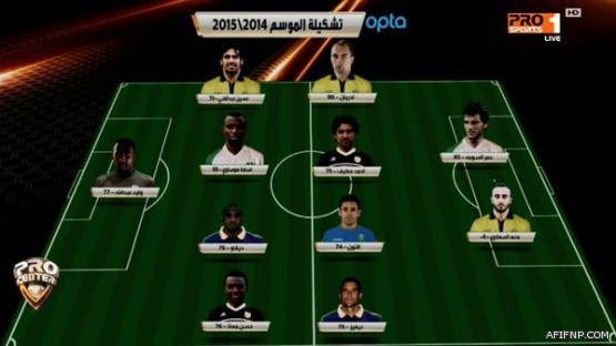 الوسط : ادريان ميرزيفيسكي – النصر ، احمد عطيف – الشباب ، التون خوزيه – الفتح ، تياجو نيفيز – الهلال .