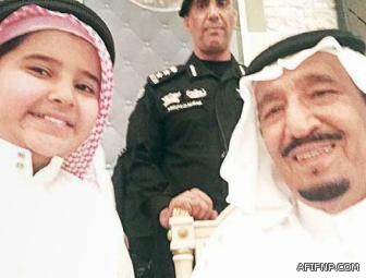 وسأل الملك سلمان، الطفل “فيصل يوسف” الذي قدم في مكان جلوسه، بعد أن صافحه مبتسماً ومداعباً: ماذا تريد؟، فأجابه الطفل بالقول: “أبغى أتصوّر معك سيلفي”.