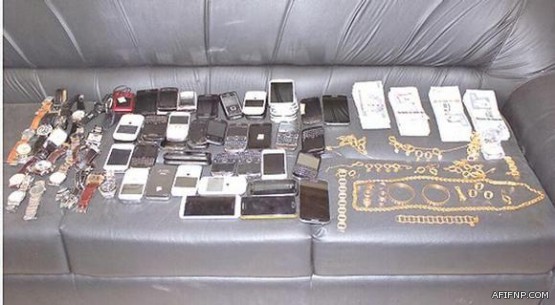 وعثر بحوزة الجناة على مسروقات متنوعة بينها مصوغات ذهبية وأجهزة اتصال وعدد من الأجهزة الإلكترونية الأخرى، وأقروا بارتكابهم تلك الجرائم ودلوا على المواقع التي سرقوا منها وتبين مطابقتها للبلاغات المقدمة، وما زال الجناة يخضعون للتحقيق لمعرفة علاقتهم ببلاغات مماثلة، تمهيدا لتقديمهم للعدالة.