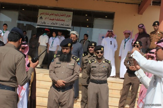 كان في استقبال الضيوف مدير ادارة الدفاع المدني بمحافظة عفيف المقدم : ذعار مرزوق الخراصي ومدير شعبة العمليات النقيب سعد محمد الحافي ومدير قسم السلامة الميداني النقيب عبدالله هلال المغيري .