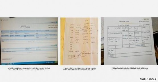 وقال المواطن، إن موقع المديرية أظهر أن اليوم الأربعاء هو آخر موعد لسداد قيمة الفاتورة، فقرر مراجعة مبنى المديرية، حيث أكد له المسؤولون هناك قيمة الفاتورة (2149400 ريال)، ما دفعه إلى تقديم اعتراض عاجل، حيث تم إبلاغه لاحقاً أنه تم تصحيح المبلغ إلى 4014 ريالاً، فقام بدفعه خشية مضاعفته لاحقاً.