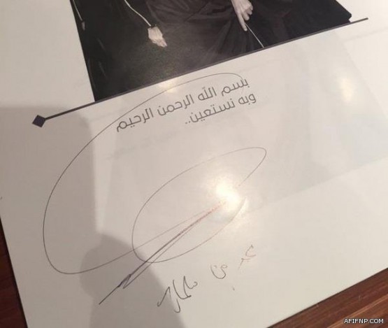 ونشر الإعلامي جمال خاشقجي الصورة على حسابه في موقع التواصل الاجتماعي “تويتر” معلقا: “رؤية المملكة 2030 وبتوقيع خاص من الأمير محمد بن سلمان”.