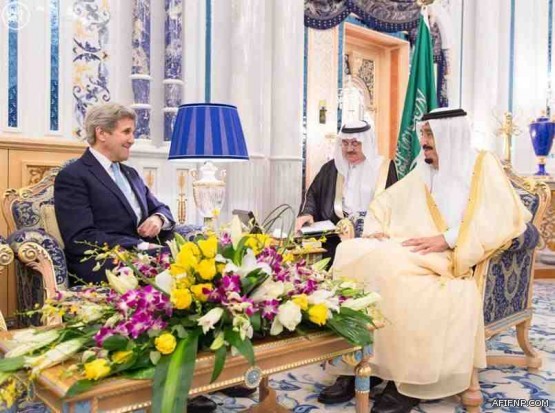 بحث خادم الحرمين الشريفين الملك سلمان بن عبدالعزيز مع وزير الخارجية الأمريكي جون كيري أوجه التعاون ومستجدات الأوضاع في المنطقة، وما يبذل من الجهود لمعالجتها.