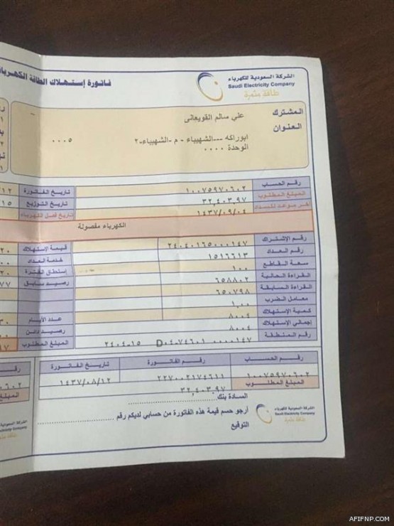 تفاجأ مواطن من سكان قرية “أبو راكة” بمنطقة تبوك، بقيمة فاتورة كهرباء منزله المكون من دورين وملحق، حيث بلغت أكثر من 32 ألف ريال، وذلك عن استهلاك ثلاثة أشهر.