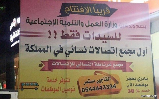 أكد وكيل وزارة العمل والتنمية الاجتماعية المساعد للبرامج الخاصة عبدالمنعم الشهري، أن أول مجمع اتصالات نسائي في المملكة سيفتتح في الرياض قريباً، في إطار سعي الوزارة لسعودة قطاع الاتصالات.